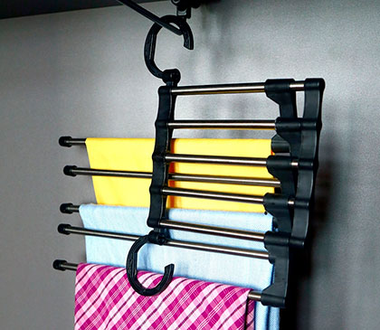 Cuierul pentru pantaloni „Easy-Peasy” este perfect pentru orice garderobă. Ocupă puțin spațiu și are, de asemenea, o mare rezistență datorită materialelor de înaltă calitate. Umerașul „Easy-Peasy” poate fi folosit nu numai pentru pantaloni, ci și pentru curele, tricouri, eșarfe și alte lucruri. Mereu va fi ordine în garderobă!