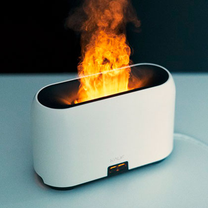 Datorită iluminarii, aburul care se scurge capătă forma unei flăcări, iar umidificatorul în sine devine ca o vatră sau un șemineu. Când se adaugă uleiuri esențiale, umidificatorul funcționează ca o lampă de aromă sau un difuzor de aromă și difuzează o aromă plăcută.