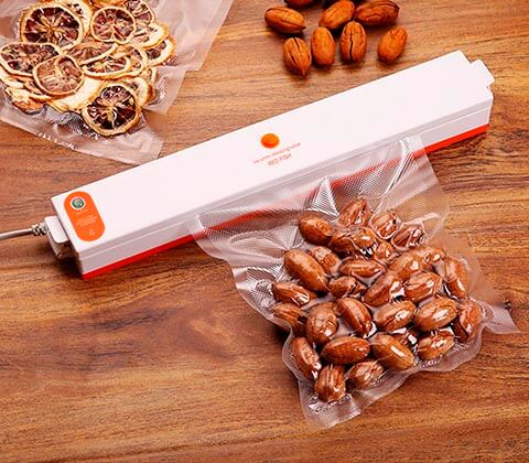 Acest aparat compact ajută la ambalarea rapidă a oricărui produs pentru depozitare pe termen lung. Este ideal pentru ambalarea unor cantități mici de alimente pentru depozitare, le protejează de îngheț în timpul congelării profunde. În formă ambalată, produsele ocupă mai puțin spațiu în frigider, făcându-l mai spațios. Iar dispozitivul în sine este compact și ușor de operat.