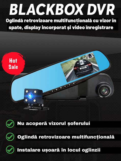 CAR DVR MIRROR Echipat cu o camera Full HD care inregistreaza in format 1920*1080, precum si cu o camera cu vedere in spate. Datorită matricei moderne, imaginea înregistrării este de foarte înaltă calitate. Înregistrare video automată în timpul absenței dumneavoastră în prezența mișcării în fața mașinii.